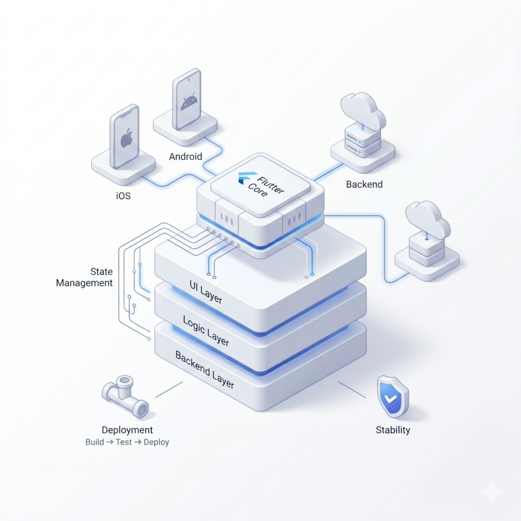 A single codebase reduces duplication only when governed by modular architecture and clear state separation. Flutter enables cross-platform development while maintaining structured control over reusable components. When engineered properly, this reduces long-term maintenance overhead without introducing platform-specific instability.