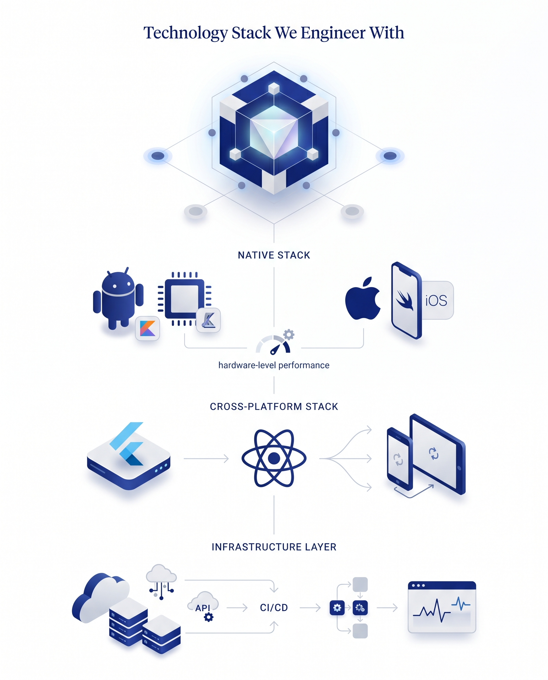Native engineering is ideal for high-performance fintech, healthcare, and IoT-driven systems.